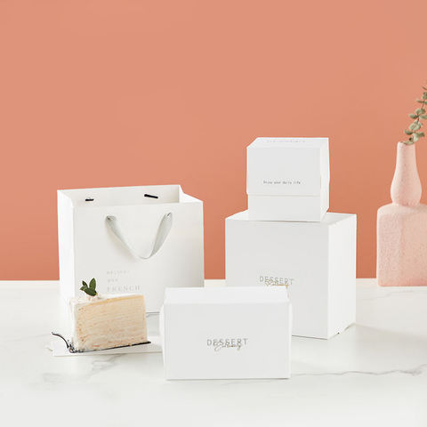 Confezione regalo di lusso per torte da forno scatola rettangolare per torta bianca Set di sacchetti scatola per torta in carta Mousse per Dessert