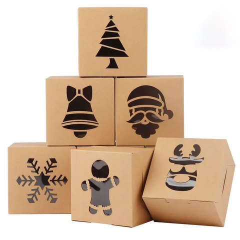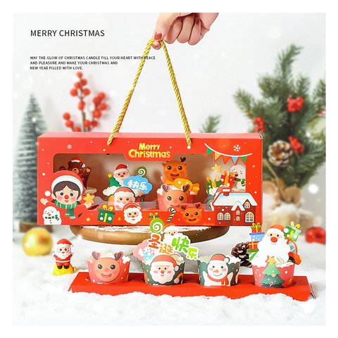 Hot Sale 350g Paperboard Printing Christmas Cupcake Packing Box Candy Rectangle Gift Packaging Christmas Paper Xmas Cupcake Box