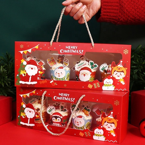 Custom Box Offset Printing Christmas Gift Cupcake Christmas Box Christmas 4 Cupcake Packing Cupcake Box for Xmas Cake Packaging