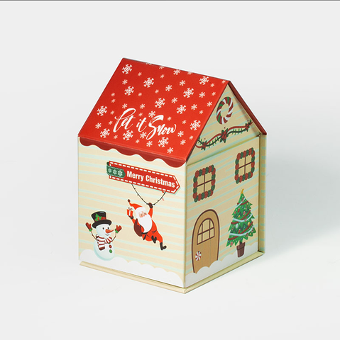 Folding Creative Colorful Small Nuts Cookies Chocolates Candy Christmas Box Cute House Shaped Xmas Gift Box for Kids